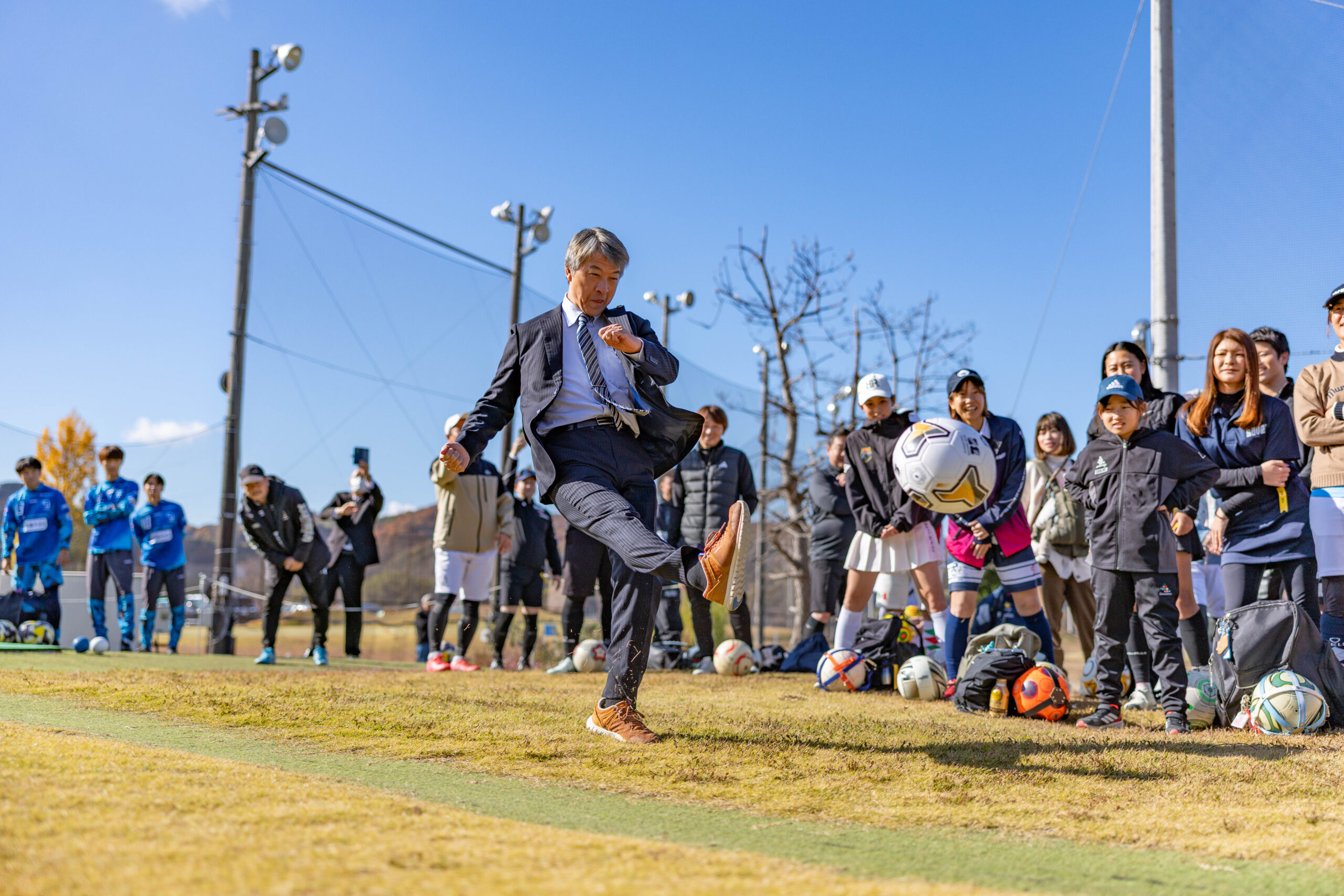 大会は、枚方市長伏見隆司様のご挨拶から幕を開けました。 「フットゴルフで枚方を盛り上げてください」──そんな温かいメッセージとともに、会場は大きな拍手に包まれました。